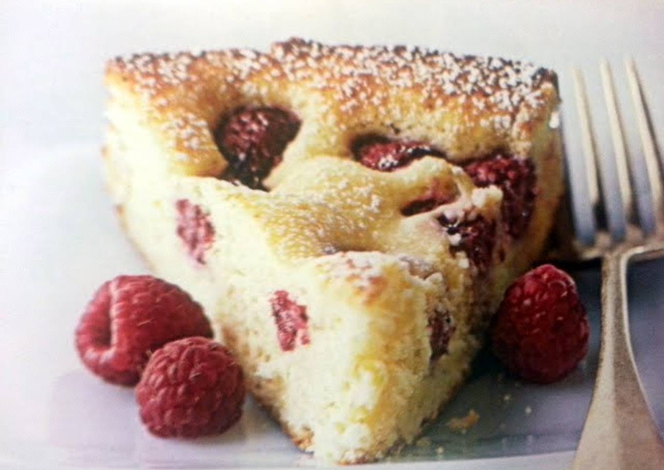 - In a small mixing bowl beat cream cheese & the remaining 1/4 cup granulated sugar in medium to high speed until combined. Add the 2 tablespoons egg product; beat until combined. Sprinkle raspberries over the batter in pan. Pour cream cheese mixture over raspberries, allowing some of the berries to show.