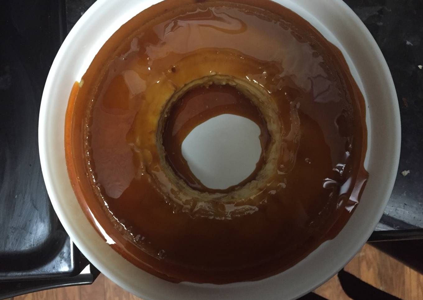 - Pour mixture into pan with caramelized sugar