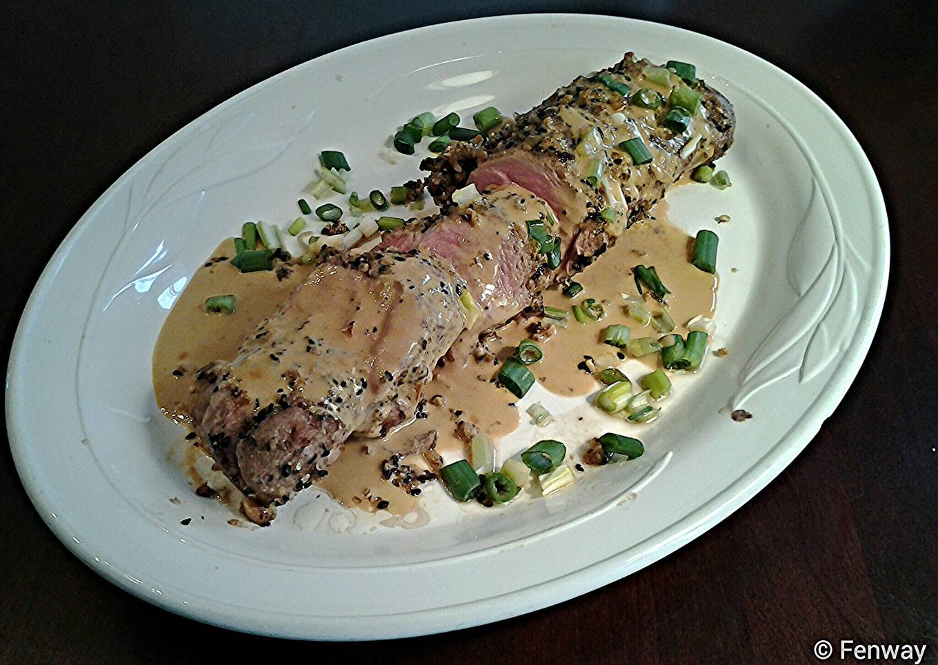 Sesame / Peanut Crusted Pork Tenderloin with Wasabi Cream Sauce