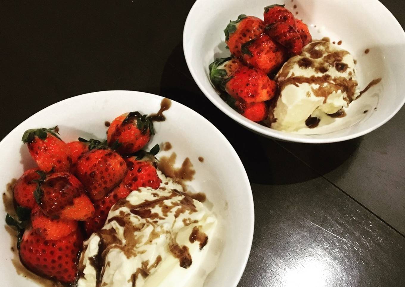 Instructions to make to make Strawberry with ice cream and balsamic sauce