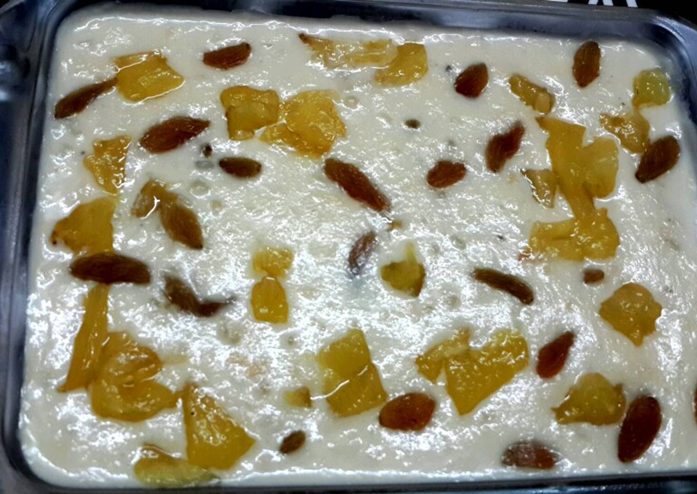 - Remove brown skin of coconut and grate it.Add it to boiling sago kheer and boil till thick.Sprinkle cardamom powder.Allow the kheer and pineapple to cool completely.Spread a layer of pineapple at bottom of a glass bowl.Then pour the sago kheer.Garnish with raisins and caramelised pineapple on top and serve chilled pineapple delight.