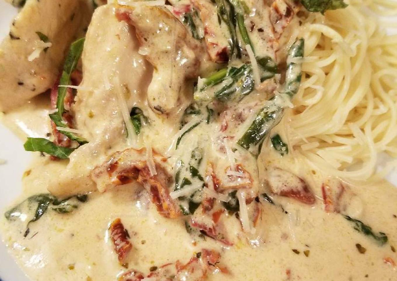 Creamy garlic chicken w/ sundried tomatoes & spinach