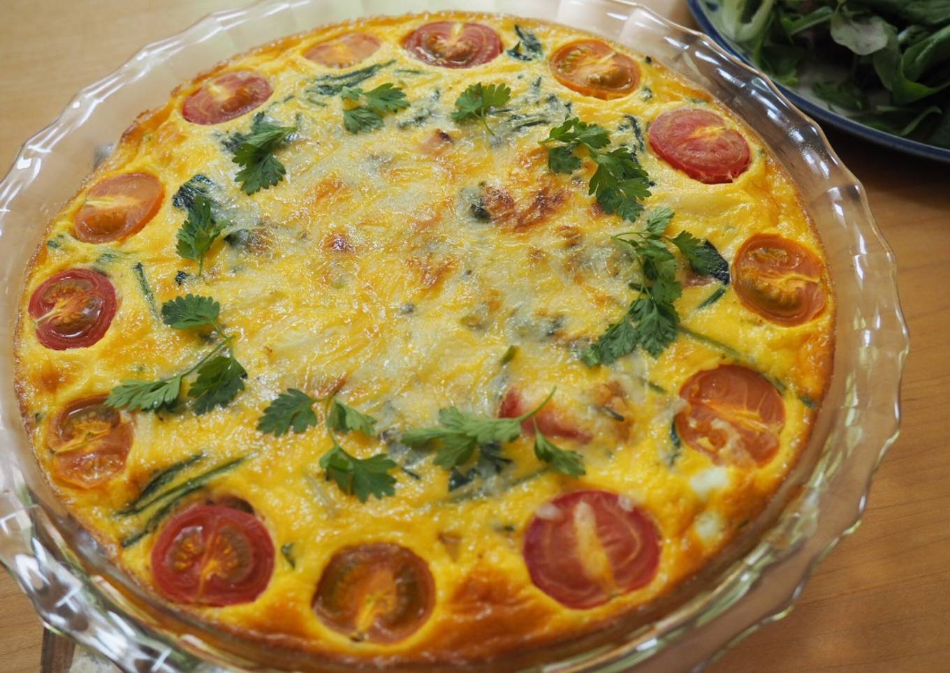 This was one of the best quiches I've cooked! It's really easy because my recipe doesn't need pastry! The recipe is enough for a regular sized heat-resistant dish(about 18cm). Try it!!