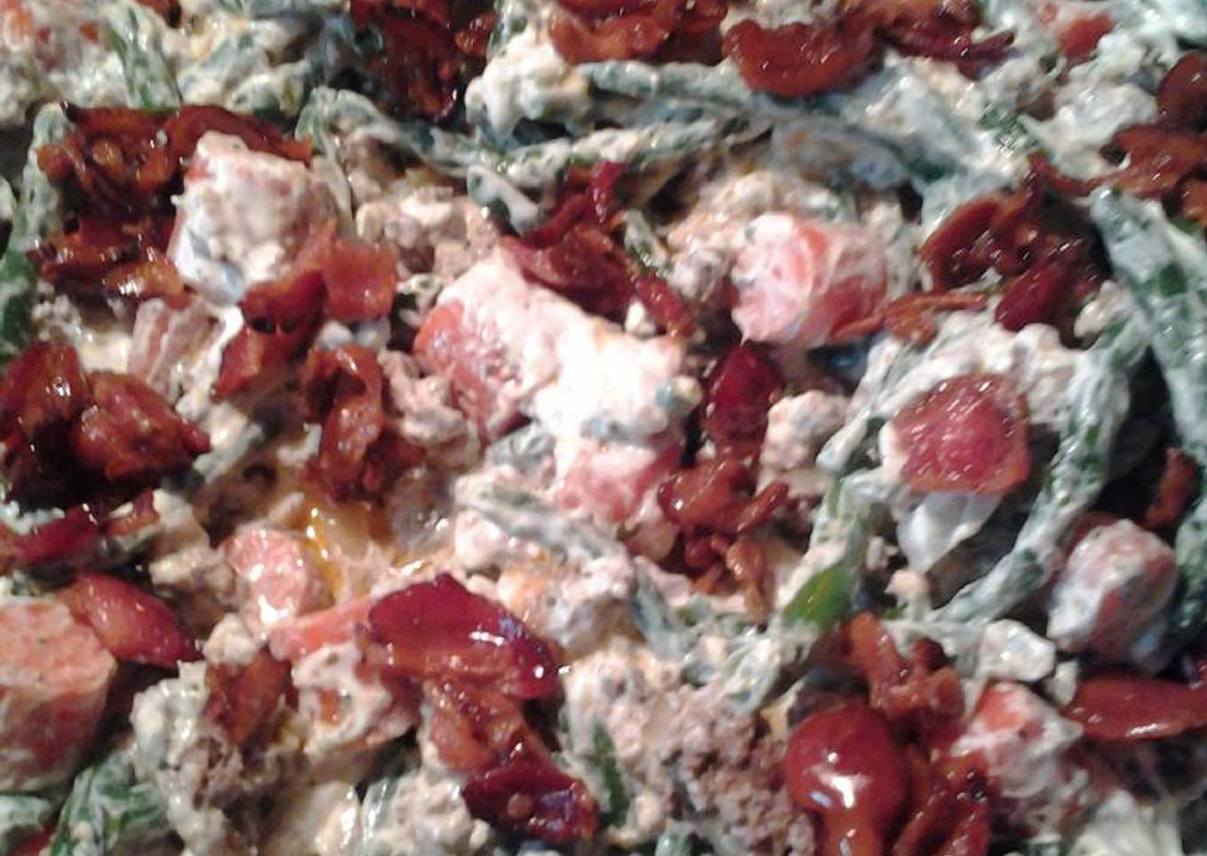 - Add bacon to top of the mixed food. Serve I hope you enjoy!