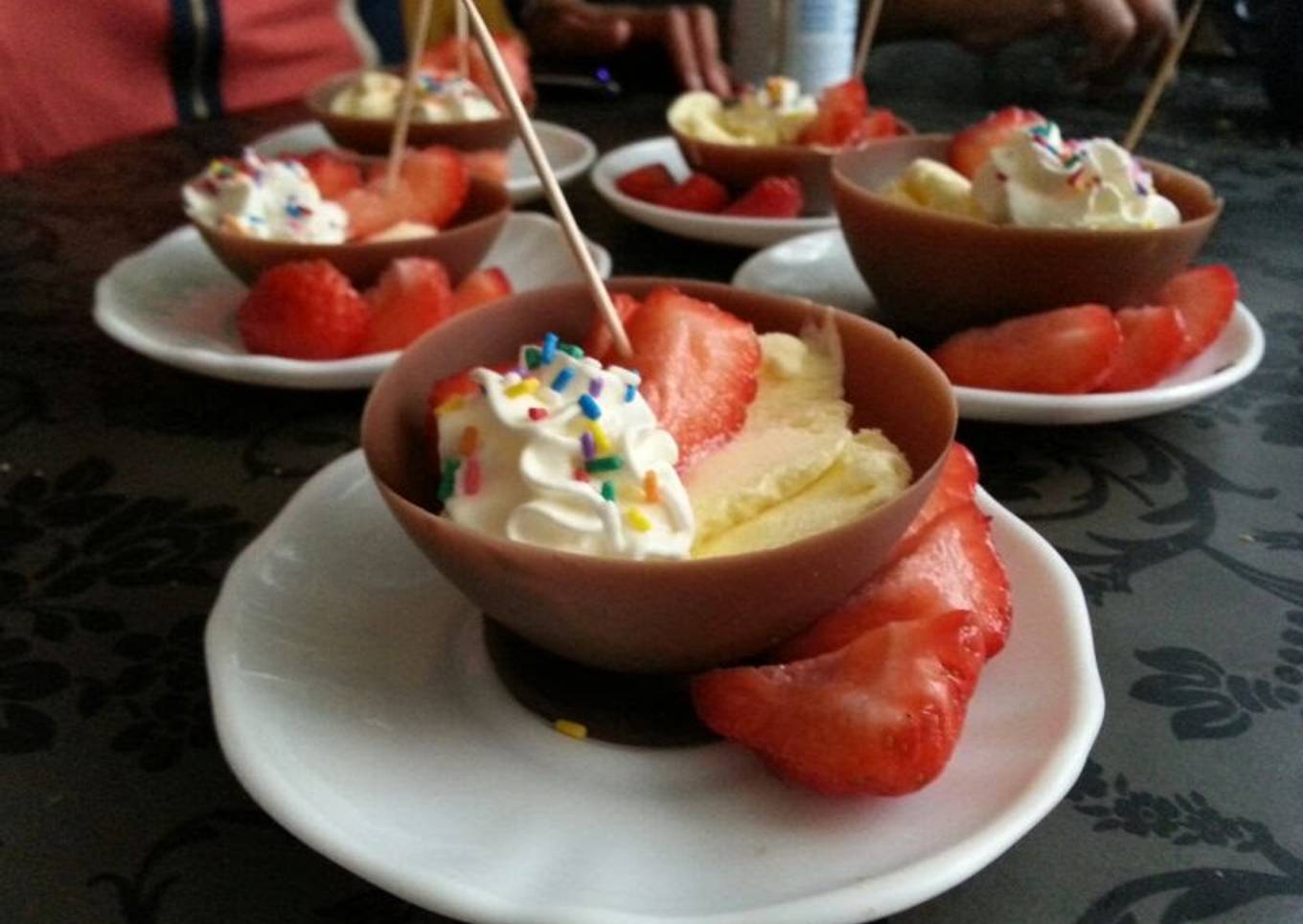 - Fill with your chosen toppings (ice-cream, fruits, chocolate sauce, nuts)