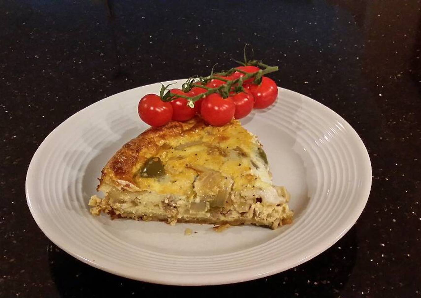 This is a slightly spicy creamy flavor packed quiche with a potato crispy crust. It's great for breakfast but makes a delicious lunch or dinner paired with a salad!